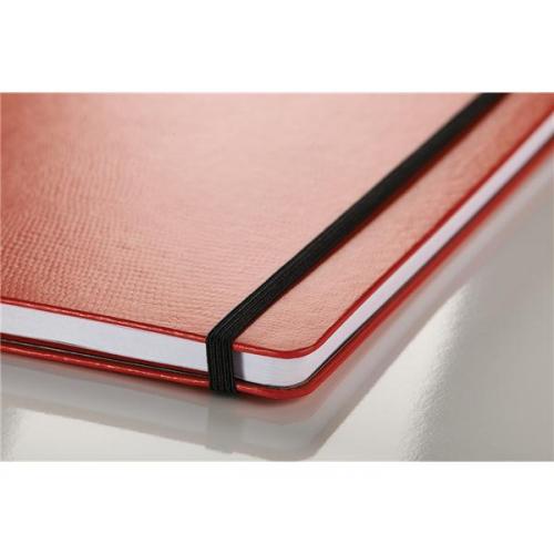 1. This premium Black n' Red Hard Cover Notebook contains 144 pages of smooth, white 90gsm Optik paper for professional note-taking. The notebook features durable, stylish hard covers and an elasticated closure for security. The pages are ruled for neatness and numbered for quick referencing. This pack contains one red A5 notebook.
