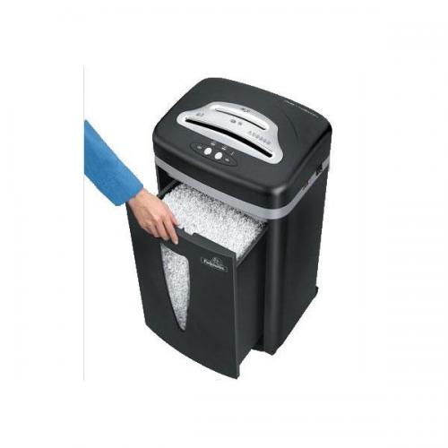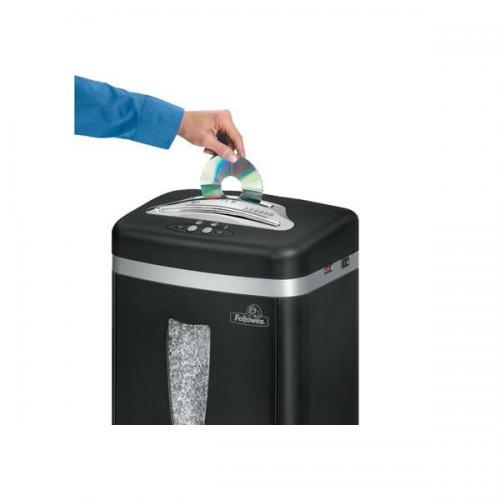 1. Fellowes MS-450Cs Micro Shred Personal Shredder. Ideal for 1-3 users. Sheet Capacity: 7 sheets can be fed into the shredder in one go (80g/m2, A4 paper). Cross Cut: Shreds paper into small confetti-like pieces providing higher security and reducing bulk waste. Cut Size:2x8mm. Security Level: 4/Sensitive, cross cut. Bin Capacity: 20 litres. Also shreds staples, paper clips, credit cards and CDs. Safe Sense touch sensitive technology. Safety lock disables shredder preventing accidental activation. Sheet capacity gauge helps prevent paper jams. Ergonomic angled throat for easier sharing. Easy lift head for simpler and cleaner emptying. User-friendly LED indicators. Turbo jam release button clears jams quickly. Separate throat and waste compartment for CDs. Electronic auto start maximises ease of use and minimises risk of jamming. Pull-out waste bin ensures easier and cleaner emptying. Clear window allows user to see when bin is full. Extra quiet operation. Designed for under the desk use. 5 year cutter head guarantee.