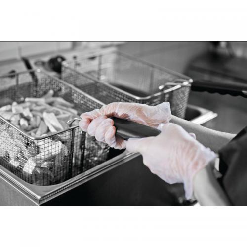 1. This pack of 100 small disposable vinyl gloves is the ideal choice for low-risk environments across a range of industries. Made from PVC vinyl and completely latex-free, these gloves reduce the risk of an allergic reaction for sensitive users. They provide flexible and comfortable protection for everyday environments such as food preparation, cleaning, hairdressing or decorating. These gloves are powder-free to reduce dust contamination in sensitive environments.