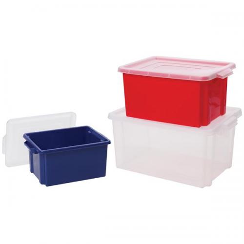 1. Versatile Midi Crate stackable plastic storage boxes. Matching snap fit lids sold separately. WxDxH: 360x270x190mm. Blue. Capacity: 14.5L.